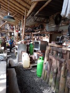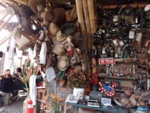 - El espacio: Estrecho, mesas irregulares los platos (de metal) bailan sobre las tablas, las bancas inestables y angostas. El decorado bonitas las plantas, especialmente los helechos, pero la atiborrada decoración de elementos viejos que quieren asemejar a antigüedades dejan una mala impresión en un restaurante por que se observan sucios y cubiertos de polvo. Los baños insuficientes y en deficiente estado.
