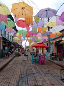 En el casco urbano se combinan las antiguas casas de balcones y chambranas que dejaron los colonizadores, con algunas construcciones, producto de la evolución del pueblo. En el parque central, los Yipaos pasan y se estacionan como señal permanente de que se está en un pueblo típico de la zona cafetera. Las calles y la plaza quimbayunas son punto de encuentro y paso obligado hacia los atractivos de la región, como el Parque Nacional de la Cultura Agropecuaria Panaca.