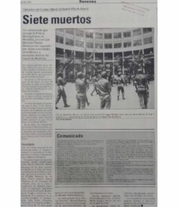Foto 1 – 2: Los diarios El Mundo y El Colombiano reportaron la masacre como un operativo del Cuerpo Élite de la Policía que buscaba capturar al empresario Mariano Ospina Montoya.