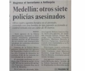 Recuerdo también en la noche cuando colocaron la bomba al hotel Intercontinental, que murió el teniente Santana, un sargento Potosí y un agente Villa, esa noche mandaron una comisión especial al mando del teniente Bahamón Vega Álvaro, y a Cadena José Nelson y un subteniente Mesa de la DIJIN, ellos venían con unos cien agentes aproximadamente, suboficiales y agentes, me acuerdo que en esos tres días, tres o cuatro días, masacraron cerca de 150 personas, las cuáles dejaban botadas por algunos lugares y por los barrios populares, según ellos era porque era el desquite de lo que nos habían hecho, yo nunca estuve de acuerdo con eso, inclusive cruzamos algunas palabras con algunos de ellos, porque son compañeros de curso.